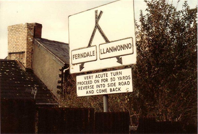 At the next junction turn sharply right into Blaenllechau Road. There is no pavement on the first part past the first two houses so take care. Stop where the pavement starts outside the third house on the left (Number 6) and look across the road at the sign for downhill traffic.