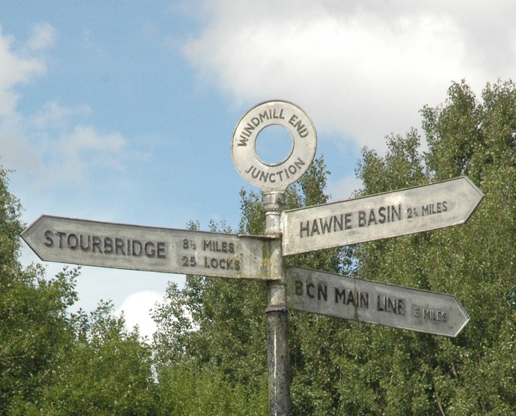 To begin exploring Windmill End, let’s get our bearings. Look to the right and the dizzying array of bridges we can see is Windmill End Junction. We will find out more about the junction later but for now focus on the canal immediately ahead. This is a section of the Dudley Canal which links the towns of Dudley (over the horizon to the right) with Stourbridge (beyond us to the left).