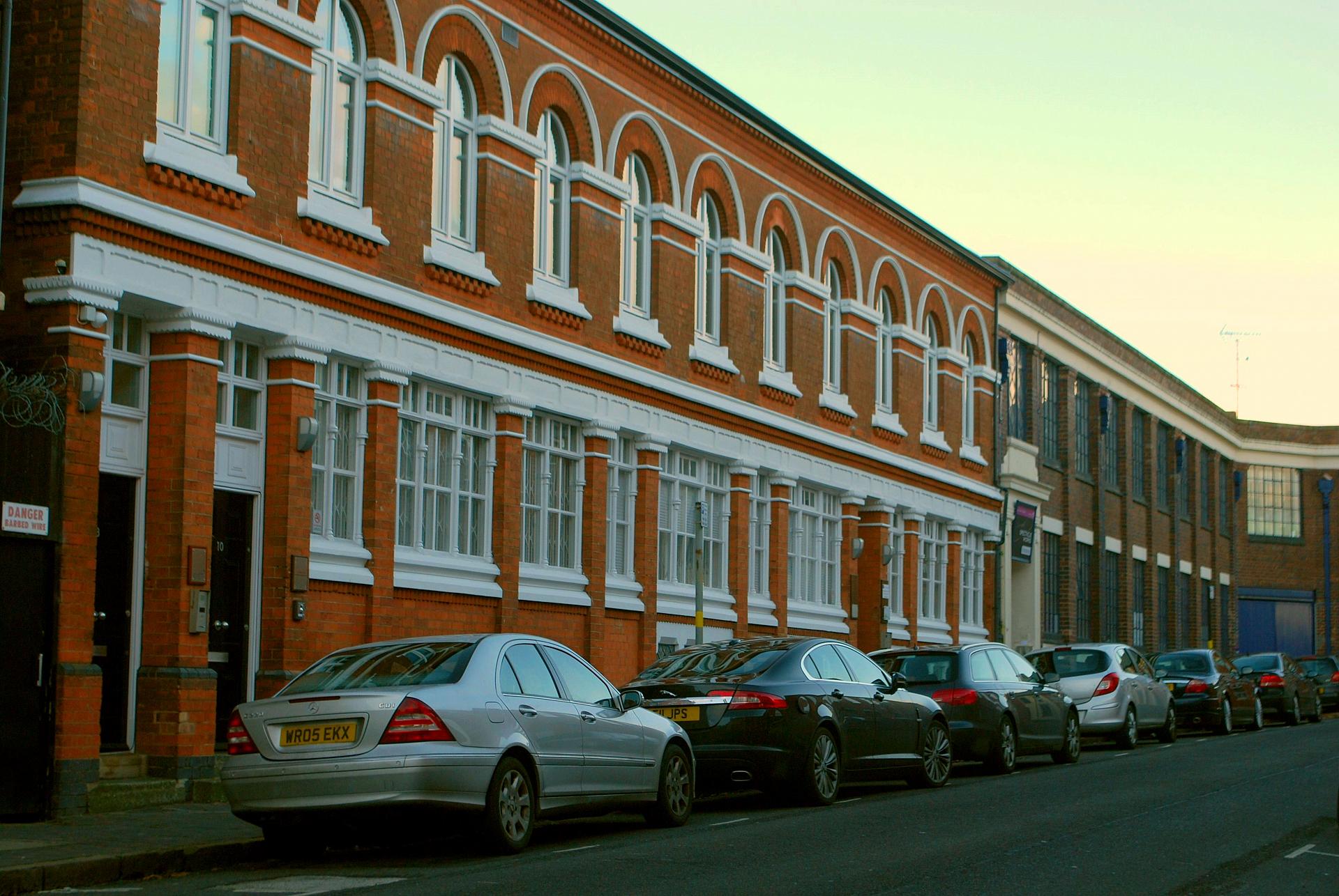 At the end of Spencer Street is a mini roundabout. Keep the roundabout on your left and cross over the junction with Hockley Street to continue along Spencer Street. At the end, carefully cross over at junction with Vyse Street. Continue ahead into Hylton Street for about 20 metres. Stop outside the large red brick building on your left with arched upper windows.