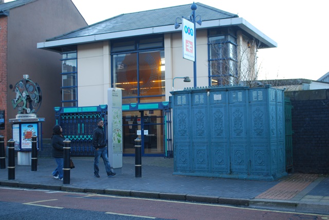 While we are here, look outside the station to see one of the original Birmingham pissoirs, a cast iron toilet originally found widely across the city, but, rarely elsewhere. This heavy cast iron structure was made in Glasgow, but it is not unlike the ‘heavier’ side of Birmingham metal manufacturing. It’s in sharp contrast with the very precise, highly skilled small-scale work of the Jewellery Quarter and its associated trades.