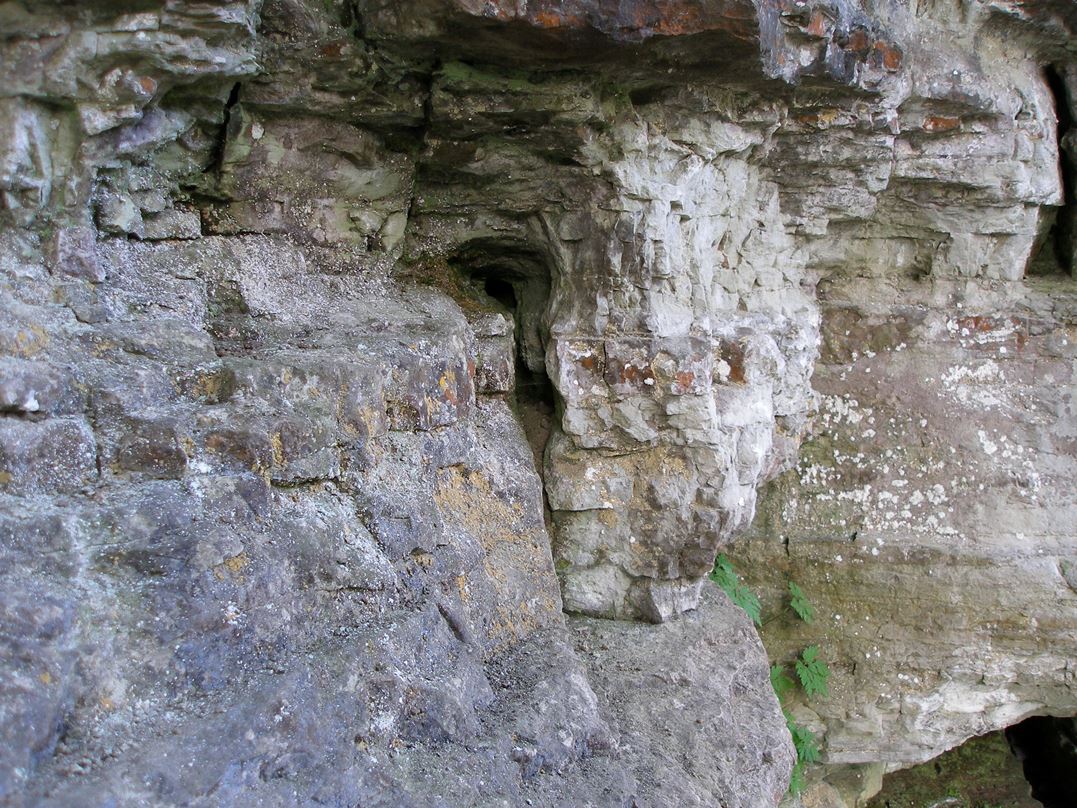 Look for cavities in the rock that are big enough to put a hand inside and have a curious keyhole shape. These holes have also been dissolved by water but their creation relates to our story of fluvio-glacial erosion.