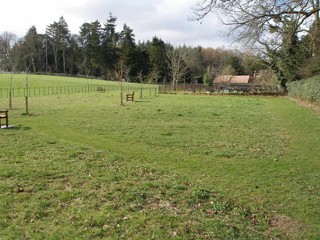 Continue along the Bread Walk. When you reach a junction of paths, keep left and follow the main path. At the end, go down the stone steps and along the pavement to the main road. Carefully cross the road and go straight ahead into Park Road. Follow the lane to the end where you will find a cemetery. Stand by the fence and look out to the field beyond.