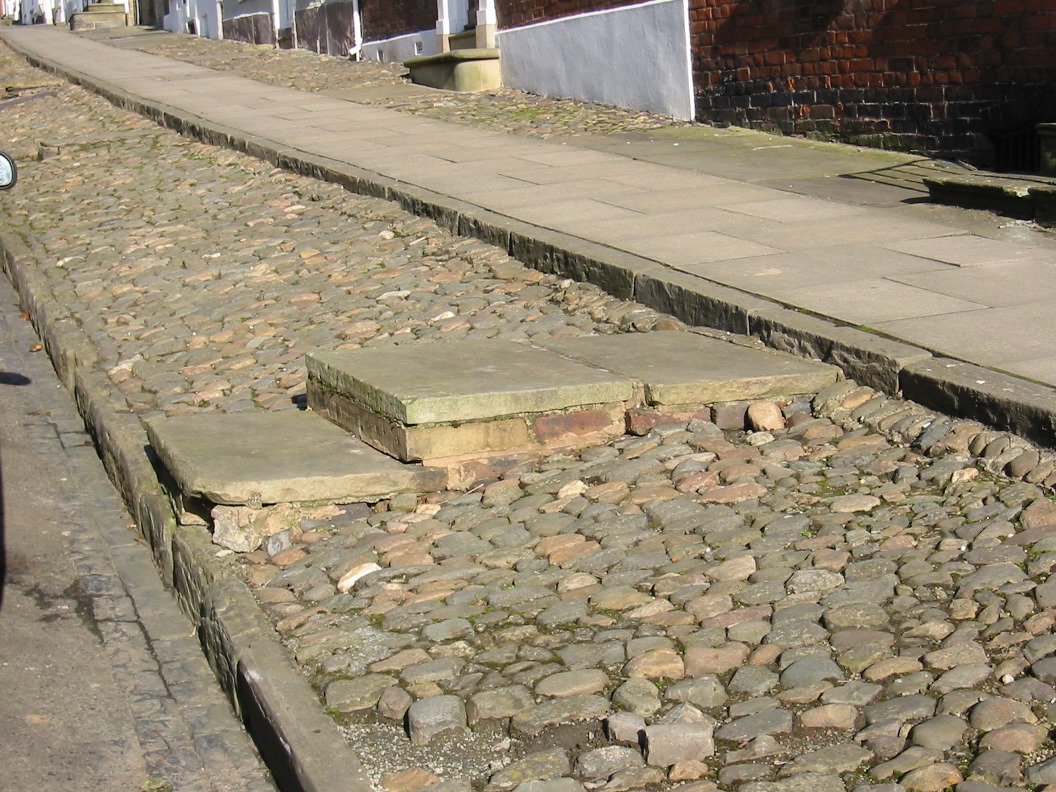 Telford’s works also involved improving the street drainage. Although his engineering works solved the problem at the time, you can see that the gate is now not well suited for modern traffic entering the town.