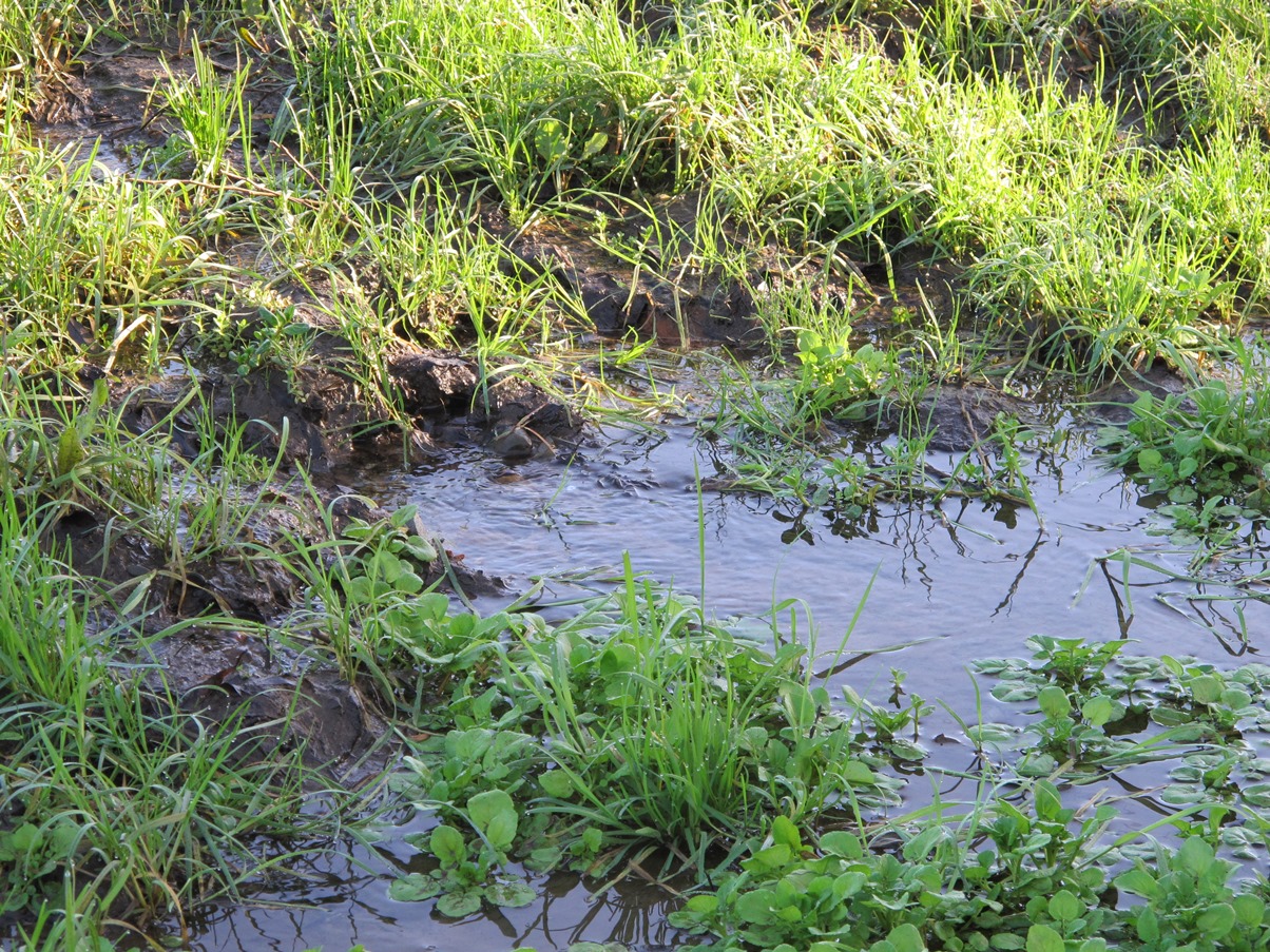As we discovered earlier at Gravel Hill, water can easily flow through – or ‘permeate’ – the loose deposits of fluvio-glacial material. This boggy section of field at the bottom of the Bromfield Terrace is a demonstration of this. Look carefully at this spring and you will see bubbles, hence its popular name, The Boiling Well.