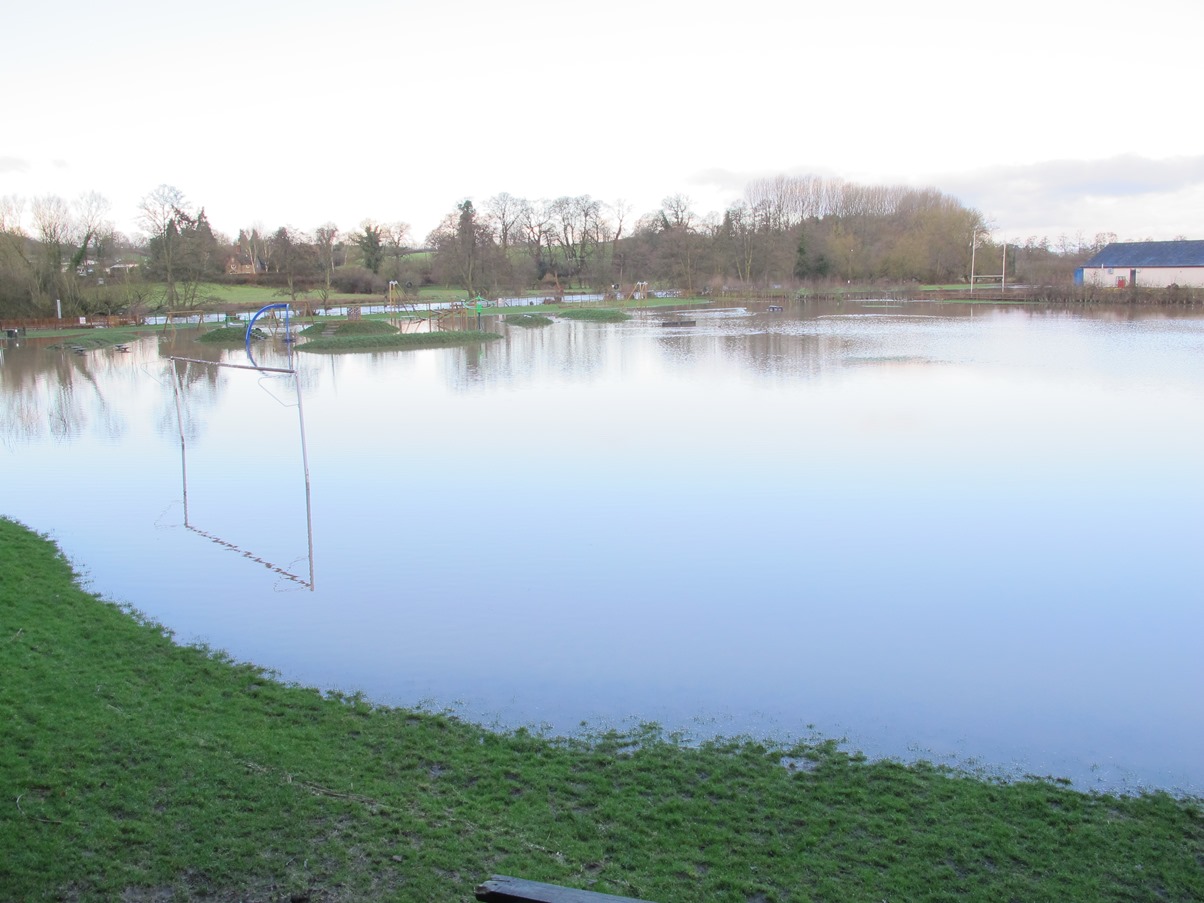 This recreation ground is Linney Riverside Park. As you can tell from the name it’s by the river. The flat land commonly found beside rivers is known as a ‘floodplain’. As the term indicates, such areas are prone to natural flooding during periods of high river flow.