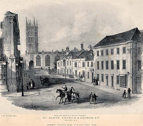 Before we leave this spot have a look down Church Street. This is a good example of the post-fire reconstruction of the town – wide streets and houses generally limited to two storeys with dormer windows above. Also look the other way along Northgate. Northgate is the best example of the post-fire rebuilding and is, perhaps, the grandest street in Warwick.