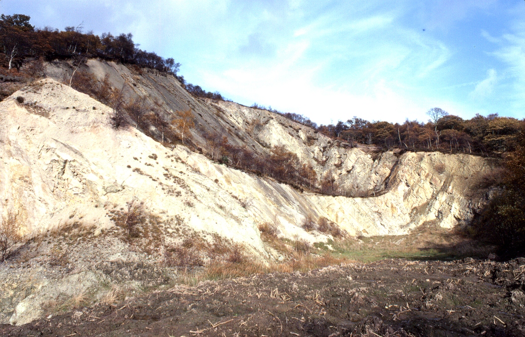 The quarries that we saw at the beginning of the walk and those around us in Limekiln Wood here have been closed to commercial exploitation for many years. But mining and quarrying is not just a thing of the past – it still goes on. Across the field you can see part of an ‘open cast’ mine and this mine is new.