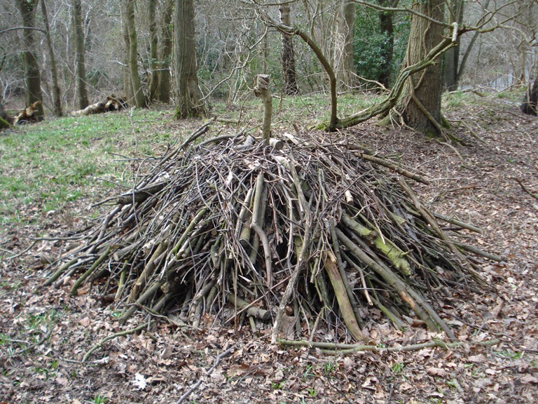 Oak and ash trees were coppiced as well as hazel. In fact, one part of the wood is called Hazel Hurst. Hazel wood was used for many things including ‘wattle and daub’ walls, basket making, walking sticks, fork handles, fencing, animal traps, pea and bean sticks. Hazel is also the habitat of our native dormouse, the hazel dormouse, which is nocturnal, arboreal and more abundant than you may suppose in these woods.