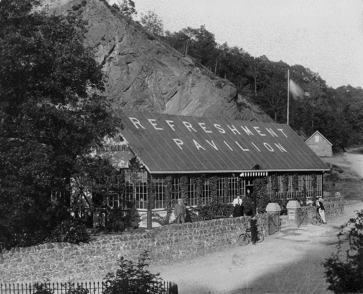 In 1899, a wooden building was constructed here in the old quarry called The Forest Glen Pavilion. It served refreshments to the thousands of walkers who came to climb The Wrekin. At night ‘The Glen’ hosted dinners and dances for local organisations such as the Masons, Plumbers and Rotarians; also wedding receptions. Most locals have memories of this place.