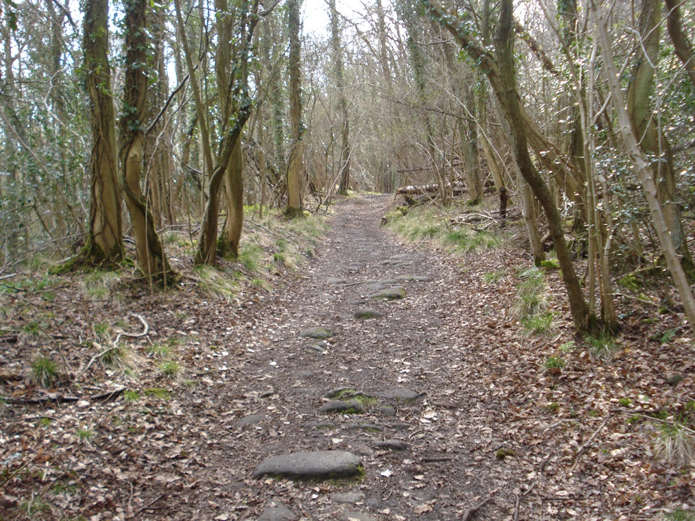 The pre-Roman track, Roman Road, Telford’s coaching road, A5 and M54 motorway all ran in an east–west direction. But predating all of those routes was this lane, running north east to south west up the mountain.