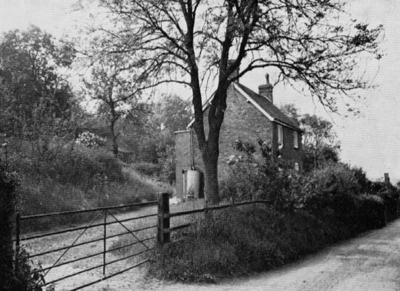 Continue along the footpath. When you reach a wider track, turn left with the woods on your left and a cottage on your right. Stop overlooking the cottage.