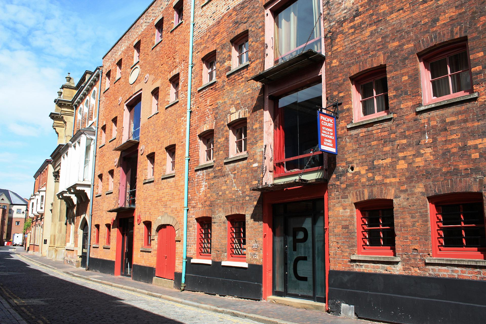 At the bridge turn left into Scale Lane Staith and walk down it to join the High Street and turn right. Walk up the High Street and past a pub called Ye Olde Black Boy until you reach a couple of red brick buildings called Pacific Court on the right.
