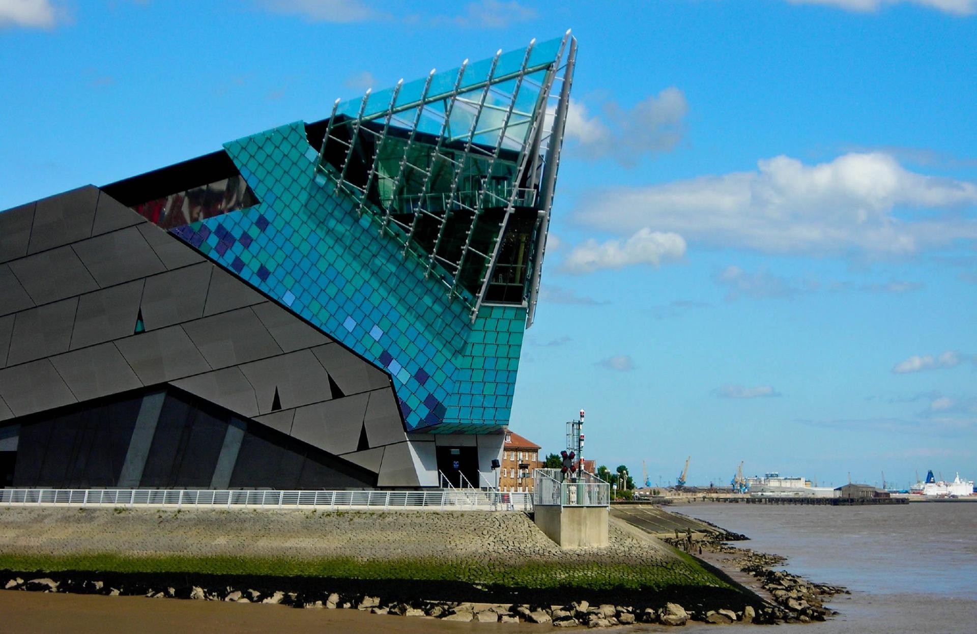 Continue down Humber Dock Street towards the Estuary (the street turns into Humber Place). Pass a set of lock gates and a lock keeper’s cottage off to the right and the Minerva Pub on your left. Just after the pub turn left and walk along Nelson Street towards The Deep (the aquarium).The River Hull prevents you off from reaching The Deep itself but stop by the waterfront here and look out to the estuary.