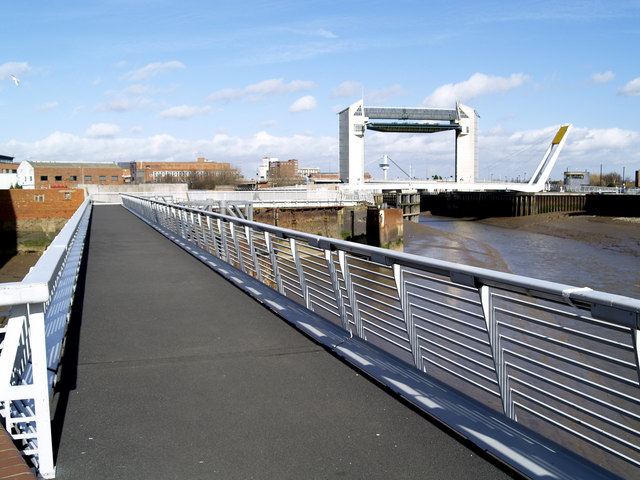 Walk over the bridge heading away from The Deep and at the end turn right. Walk just to the left of the tidal barrier (staying to right of the road) and pick up the riverside footpath. Follow this under a bridge and along the river until you reach a black bridge called Scale Lane Swing Bridge.