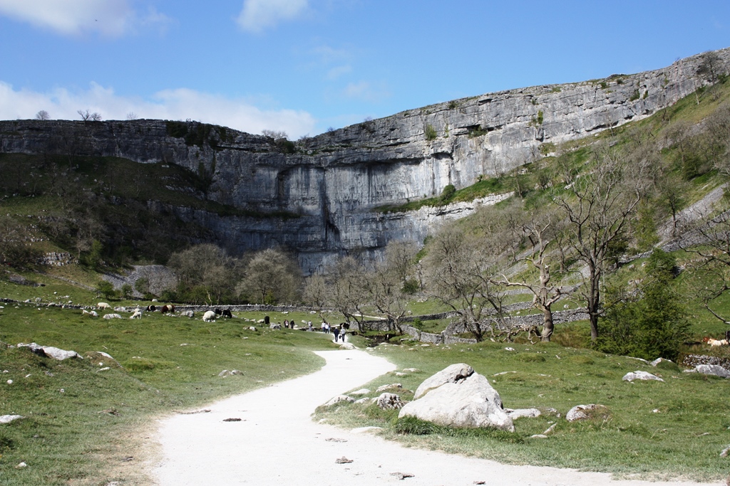 However, a river and waterfall alone would have caused Malham Cove to retreat into a narrow gorge, not this wide crescent. The cove is 70 metres high and its curved walls extend for 300 metres. The precise nature of its formation is still debated, but the width of the Cove suggests that ice might have contributed to the cliff erosion during the height of the Ice Age.