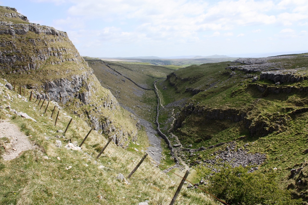 While we are up here, gaze out over Malhamdale below. You will be able to see some of the span of Malham Cove stretching out and get a sense of just how this feature dominates the area. We’ll find out how it was formed at the next stop…