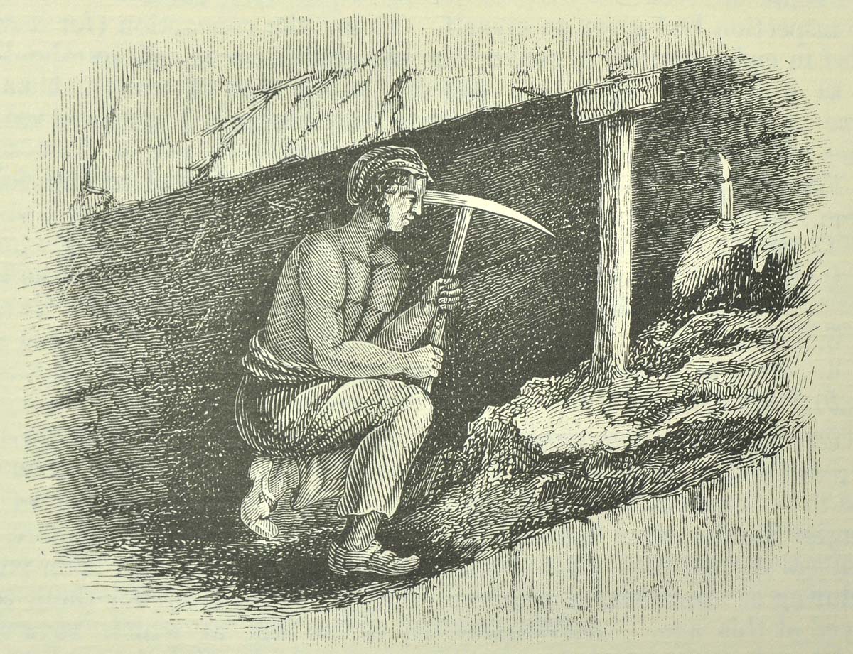 Collier cutting coal by candlelight