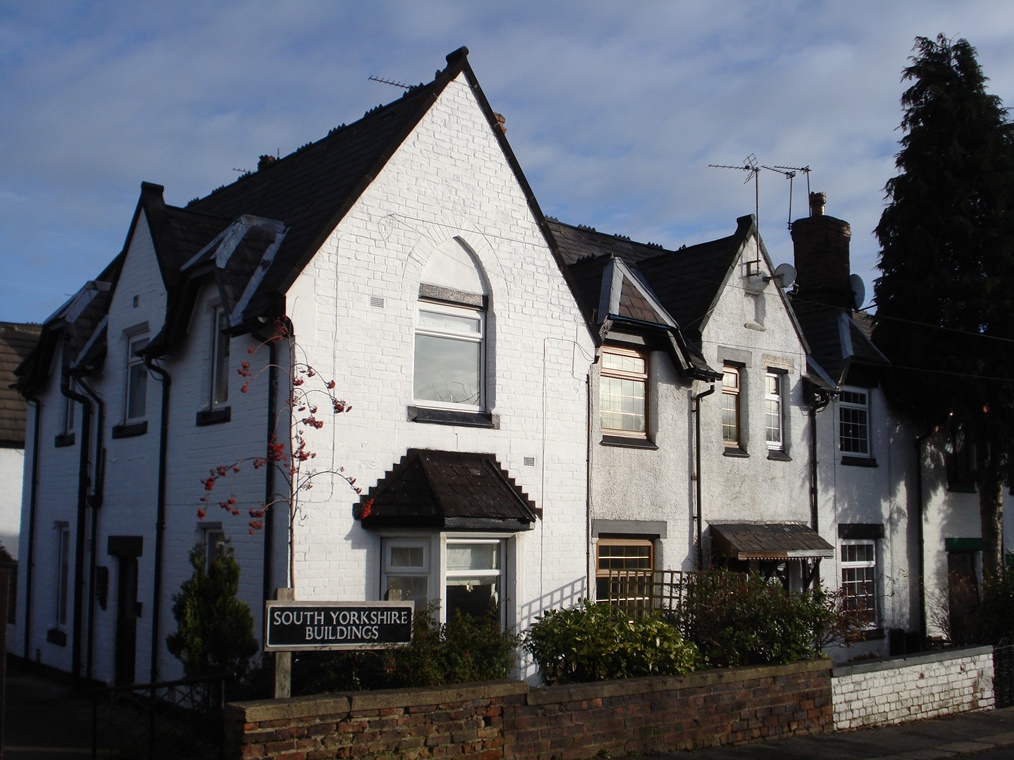 Continue up the road which changes name here from House Carr Lane to Moorend Lane. After about 150 metres stop outside a row of Victorian cottages on the right side which is known as South Yorkshire Buildings.